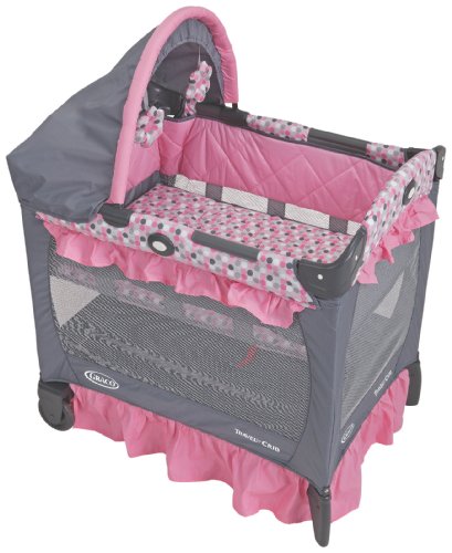 You want your little one to be well rested. She8217;ll sleep soundly at home or away in the Travel Lite8482;, our ultra-comfy travel crib. It features a removable, full bassinet with quilted bumpers to pamper your little sleeper. The canopy with soft toys soothes and shields baby from light. This travel crib is designed to be 20% smaller than traditional playards, so it will fit easily in your bedroom. Features: Weighs less than 20 pounds, so it8217;s ready to go anywhere Removable bassinet is perfect for napping Versatile crib easily converts to a portable playard Quilted mattress pad creates a comfortable sleep space 20% smaller than our traditional playards for easy in-room fit Canopy with soft toys to soothe baby Signature Graco174; push-button fold makes closing your playard quick and hassle-free Folding: Compact fold, so you8217;re ready to go anywhere Quilted bumpers provide a cozy haven Handy casters for added convenience Airy mesh on all sides for maximum ventilation Convenient carrying bag for no-fuss travel and storage Specifications: Weight: 19.7 lbs Height: 29.3" Width: 22.8" Length: 32" And it features our no-fuss, signature push-button fold and a handy carry bag, so it8217;s ready for a trip to Grandma8217;s at a moment8217;s notice.