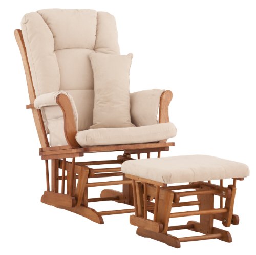 Choose from 6 wood finishes and 4 fabric combinations to create your own custom Tuscany Glider & Ottoman. The Stork Craft Tuscany Glider and Ottoman set offers gentle motion while feeding your baby in those early morning hours. Featuring a solid construction with a magical sleigh design, this is a royal centerpiece for your nursery. The enclosed metal ball-bearings allow for an incredibly smooth motion to glide your baby back to sleep. Micro fibre spot-cleanable cushions ease the worry about spills, while the construction offers an exquisite finish you'll appreciate far beyond the baby years. The Tuscany Glider comes with a matching soft, plush lumbar support pillow for supporting your baby during feeding times.Coordinates perfectly with all furniture designed by Stork CraftFeaturing metal- enclosed ball bearings for a smooth glide motion to help you unwindLength 29Width 35Height 37.5Value added comes with a matching lumbar support pillowColor Oak Finish/ Beige CushionsFinish Oak Finish/ Beige Cushions