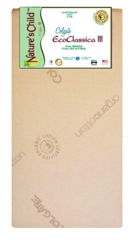 EcoClassica III Crib Mattress The Colgate EcoClassica III mattress is one of the Colgate Cradletyme Naturals collection of eco-friendlier mattresses, pads, and accessories. The dual firmness Colgate EcoClassica III is an organic cotton covered ecologically friendlier version of the extremely popular Colgate Classica III dual firmness foam crib mattress. The Colgate EcoClassica III is a lightweight (9 lb. 6 oz. - for easy sheet changes), 6' thick dual firmness infant/toddler foam crib mattress and snugly fits into all standard size American cribs and toddler beds. This eco-friendlier version of the Colgate Classica III is made with ecologically friendlier foam substituting plant oils for petroleum based oils but, it is still high quality and very firm as recommended by most medical experts. Certified by CertiPUR-US to be better quality foam GREENGUARD certified to have no hazardous air emissions. Certified organic cotton cover closest to baby's skin and a waterproof backing that ensures nothing gets into the mattress Manufactured by Colgate, the crib mattress specialist,