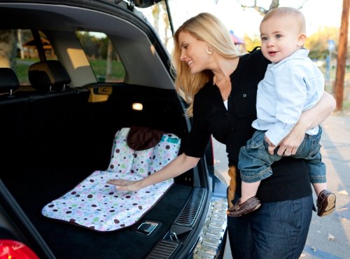 Dipe n' Go is the perfect changing station for you SUV or minivan or other hatch back vehicle. Attaches to your hatch easily. Opens with one hand while you hold baby safely in the other. Stays stocked with wipes and diapers so changing items are right at your finger tips.