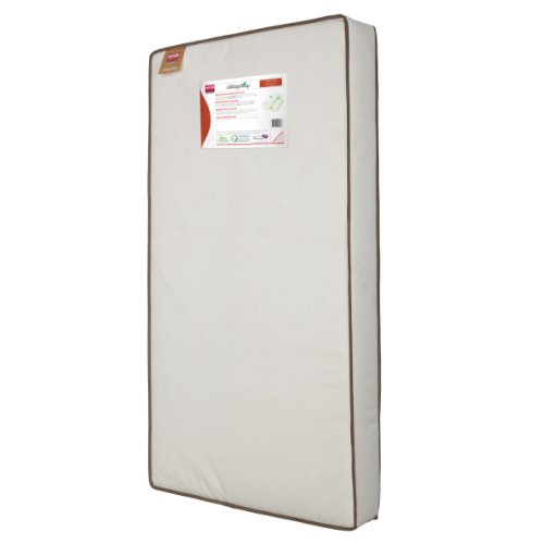 Simmons Kids Beautysleep Naturally Sunny Day Crib and Toddler Mattress features a renewable soy enhanced core and chemical-free cotton wrap that provides superior firmness while meeting the safest possible sleeping environment for your baby. A natural cotton fabric cover is ultra soft and water-resistant. It's also Greenguard and CertiPUR-US certified and meets or exceeds all federal flammability standards. This mattress also comes complete with a limited lifetime manufacturer warranty.