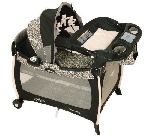Because a large part of nurturing takes place in the home, this playard blends practical baby care in a decidedly convenient, dramatically different and unique way. Accented with elliptical aluminum legs, this silhouette style Pack n Play playard blends flowing lines, ideal proportion and purposeful details to define quality and comfort. Distinguishing characteristics include: The pivoting Posture Plus changing table fits your life with decidedly functional, dramatically different and uniquely convenient height: it allows you to stand more naturally with less back strain while changing diapers The cozy, oval bassinet embraces your baby with carefully applied details like Graco Signature quilting, unlike traditional quilting methods which create holes in the fabric allowing leaks and spills to seep through and dirty the padding beneath, Graco signature quilting is ultrasonically quilted to prevent seepage, ensuring a cleaner, neater nap-time. Organizer with built in wipes case and diaper organizer blends practical baby care with style and flair Innovative squeeze latch adds graceful detailing and natural folding motion Your little one can sleep peacefully under the full slumber dome canopy which shades the bassinet with a calm, charming influence. If your little one needs a little extra soothing, the deluxe electronic mobile allows you to use 2-speed vibration which is mounted under the mattress pad so your baby will receive the full soothing benefit, or try one of the five tranquil nature sounds or calming songs With a timer that has 4 settings, there's no need to disturb your little one once baby has drifted off to dreamland. But if you do want to take a peek, there's a built in night light. This premium playard will have you and your baby setting trends in fashion, form and function. Click here to view the manual
